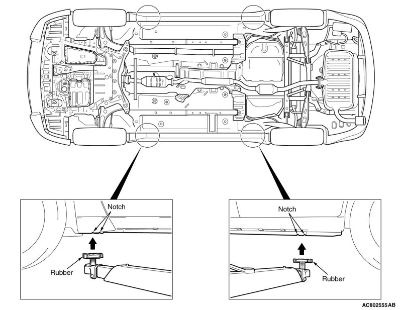 - For lifting, put rubber or similar material between the side sill and rigid rack, otherwise the side sill area will be damaged.