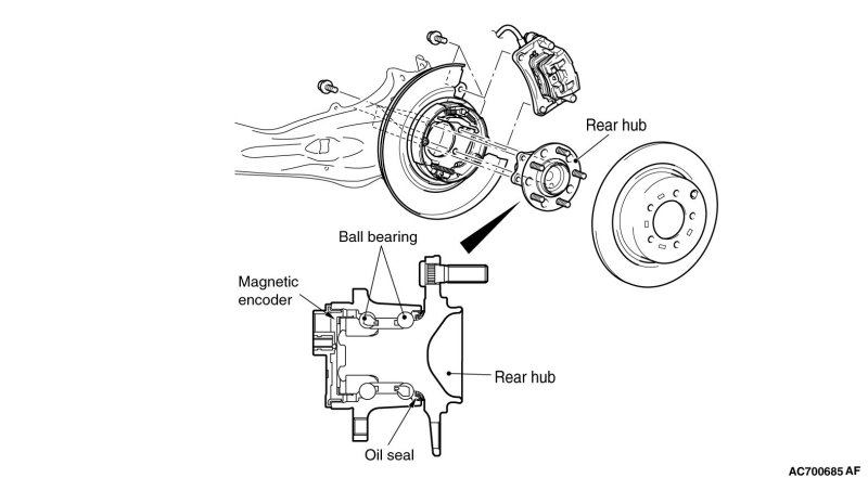 - The wheel bearing is a unit ball bearing (double-row angular contact ball bearing) which incorporates the oil seals and is highly resistant to a thrust load.