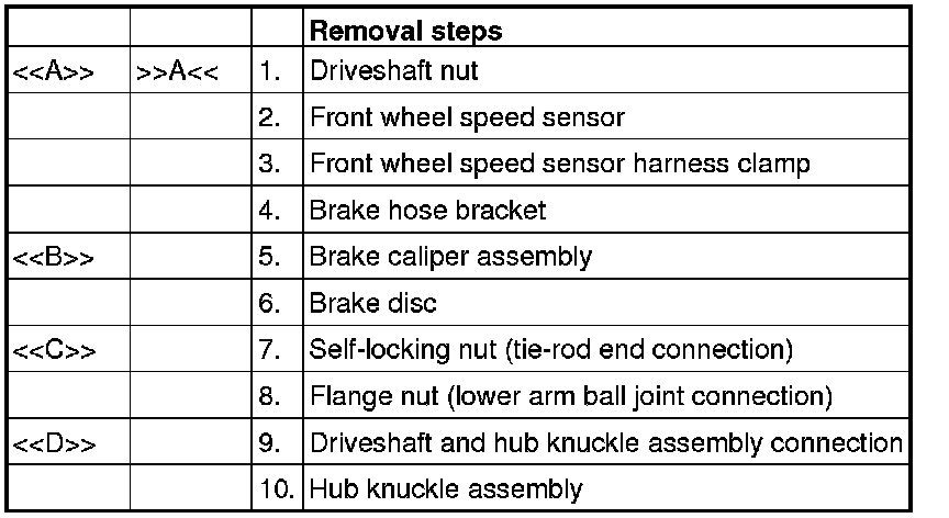[[D]] DRIVESHAFT AND HUB KNUCKLE ASSEMBLY DISCONNECTION