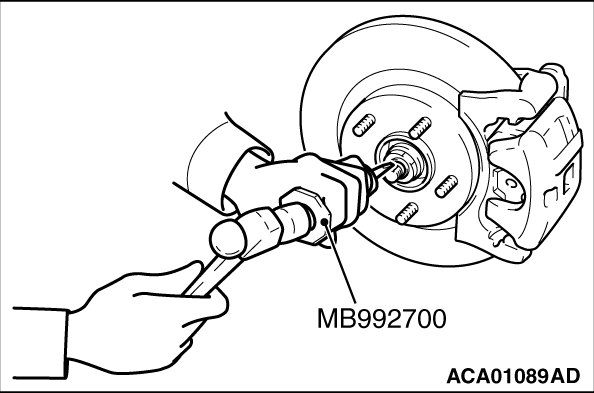If the driveshaft is seized, use special tools MB990242 and MB990244, MB991354 and MB990767 to push the driveshaft out from the hub.