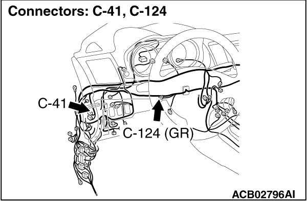 STEP 1. Check joint connector (CAN3) C-124 and TCM connector C-41 for loose, corroded or damaged terminals, or terminals pushed back in the connector.
