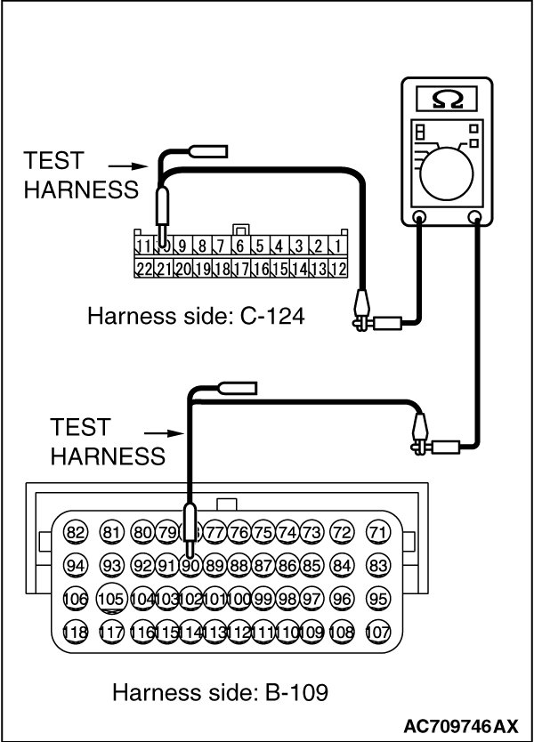 (1)Disconnect joint connector (CAN3) C-124 [except RALLIART] or joint connector (CAN4) A-55 [RALLIART] and ECM connector B-109, and check the wiring harness.