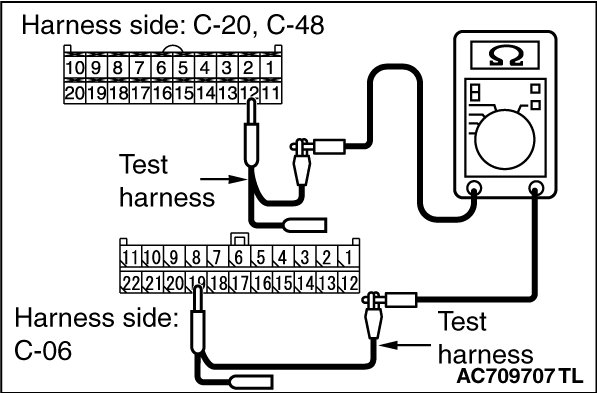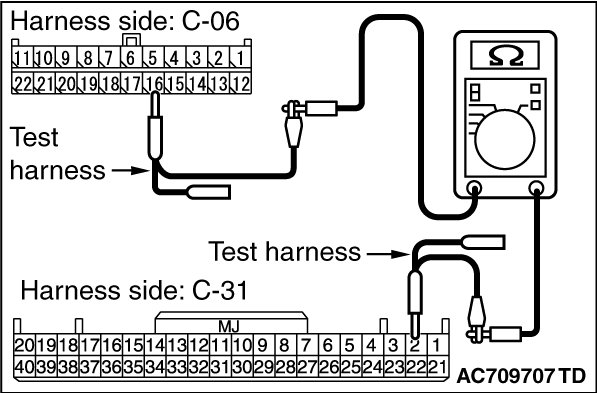 (3)Check the wiring harness between joint connector (CAN1) C-06 (terminal 22) and ETACS-ECU connector C-301 (terminal 7)
