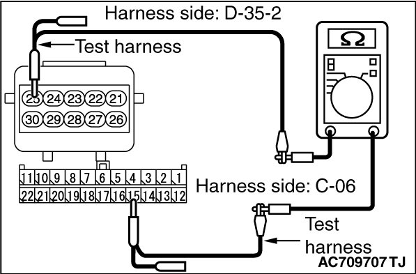 STEP 33. Check the wiring harness between joint connector (CAN1) C-06 and ETACS-ECU connector C-301 for line-to-line short. Measure the resistance at joint connector (CAN1) C-06.