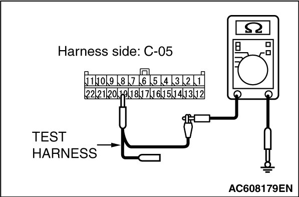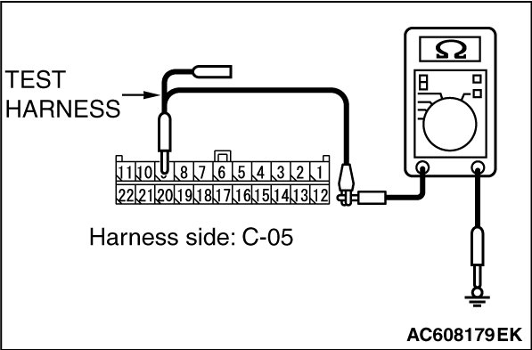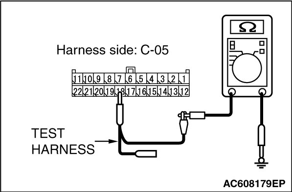 STEP 5. Check the wiring harness between joint connector (CAN2) C-05 and ETACS-ECU connector C-301 for a short to ground. Measure the resistance at joint connector (CAN2) C-05.