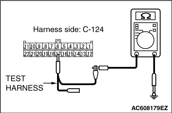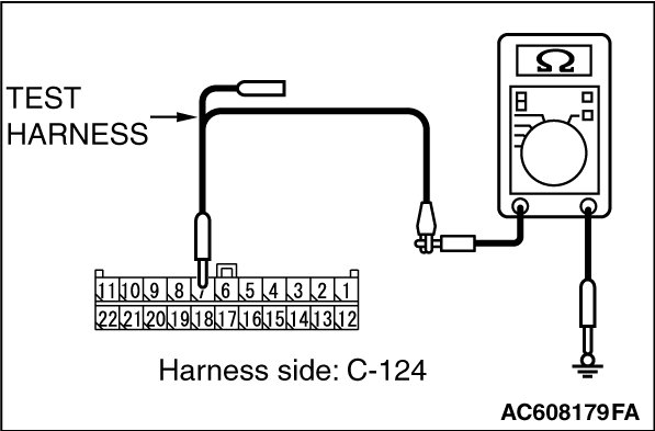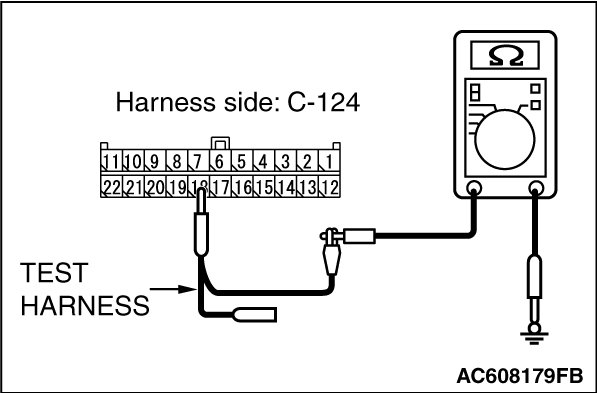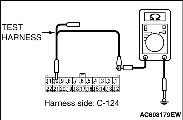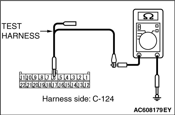 STEP 8. Check the wiring harness between joint connector (CAN3) C-124 and ECM connector B-109 [except RALLIART] for a short to ground. Measure the resistance at joint connector (CAN3) C-124.