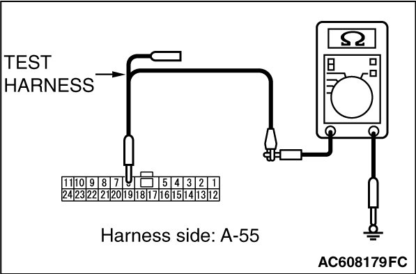 STEP 11. Check the wiring harness between joint connector (CAN4) A-55 and ECM connector B-109 [RALLIART] for a short to ground. Measure the resistance at joint connector (CAN4) A-55.