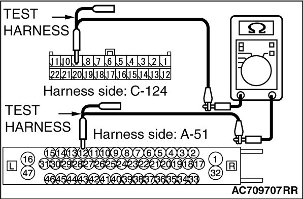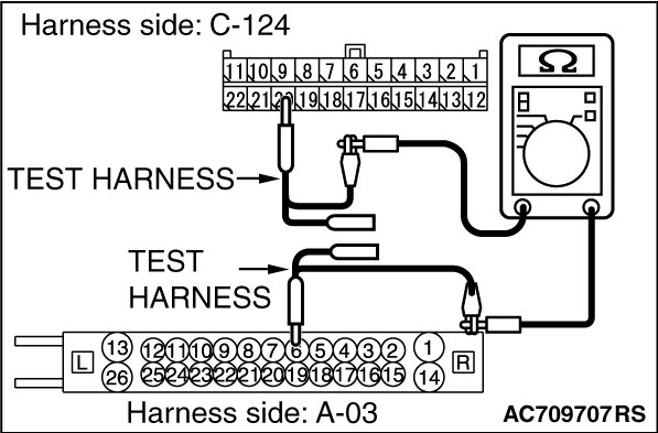 (1)Disconnect joint connector (CAN3) C-124 and ABS-ECU connector A-03 [vehicles without ASC] or ASC-ECU connector A-51 [vehicles with ASC], and check the wiring harness.