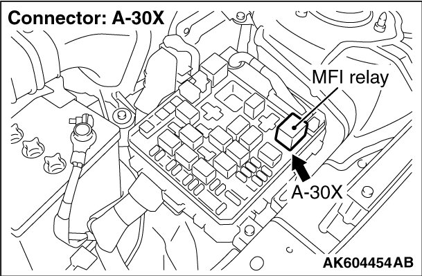 STEP 7. Check harness connector A-30X at MFI relay for damage.