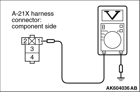 STEP 8. Measure the power supply voltage at injector relay harness side connector A-21X.