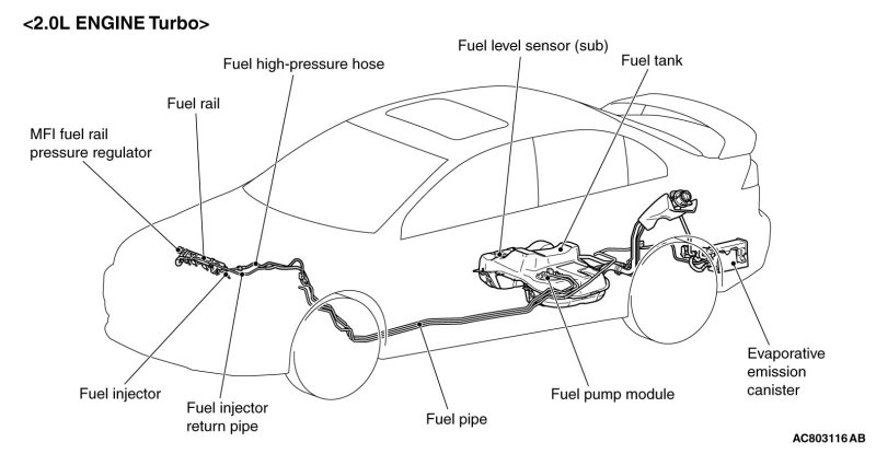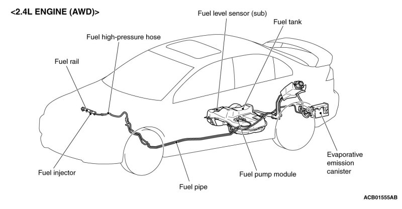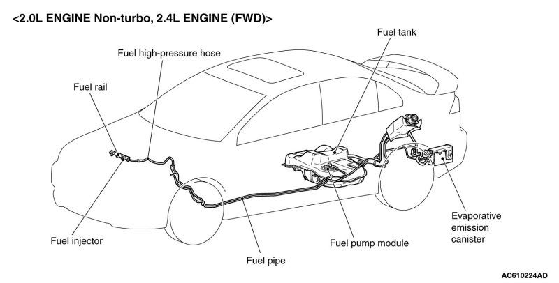 - A returnless fuel system eliminates returned fuel from the engine. The heat that fuel receives from the engine is reduced, minimizing fuel temperature in the fuel tank and controlling the amount of evaporated gas [2.0L ENGINE Non-turbo, 2.4L ENGINE].