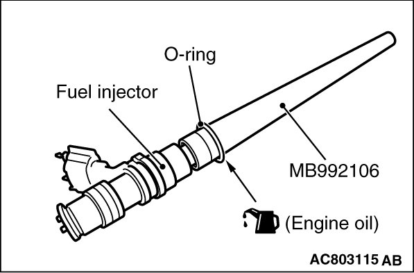 2. Using special tool MB992106, install the O-ring onto the fuel injector paying attention to avoid damage to the O-ring.