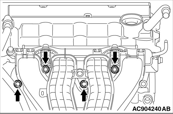 4. Loosen the four mounting bolts and nuts of the intake manifold.