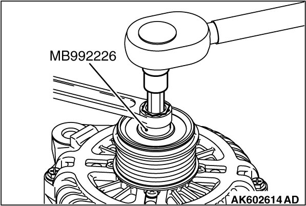 1. Set the special tool MB992226 to the pulley.