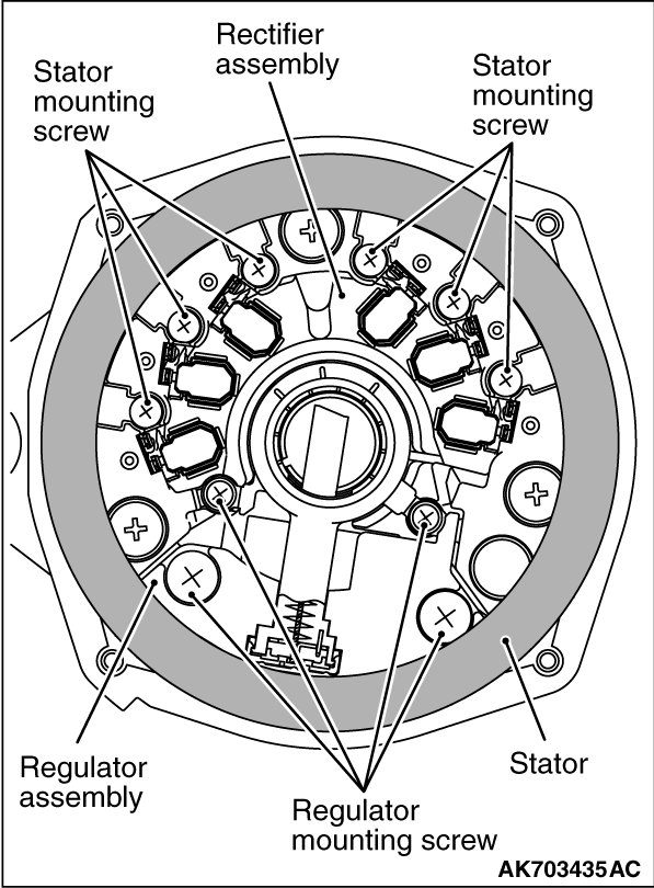 After installing the regulator assembly, insert a piece of wire through the hole in the rear bracket while pressing the brush to keep the brush against movement.