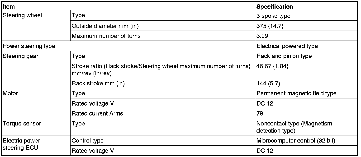 - Vehicle-speed sensitive electric power steering (whole range type) has been adopted.