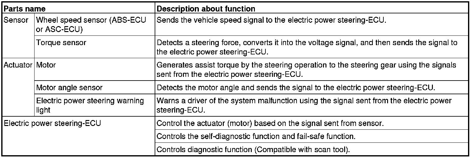 - Improved fuel consumption by reduction of engine load, and weight saving by decrease of the number of parts have been achieved with the introduction of the electric power steering system.