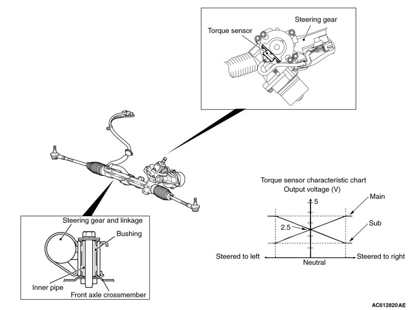 The torque sensor which detects a operated force of the steering wheel is installed in the steering gear. When the steering wheel is turned, the steering force is detected by the torque sensor. At the same time, 2-way supply voltage signal (main and sub) are input to the electric power steering-ECU.
