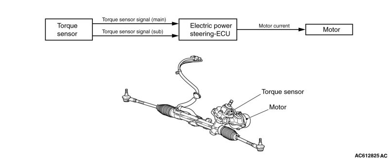 4. The electric power steering-ECU outputs the current in proportion to the torque sensor signal to the motor.