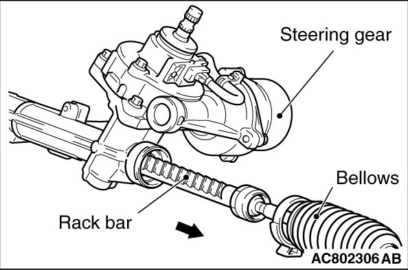 1. Move the bellows and pull the rack bar toward arrow direction.