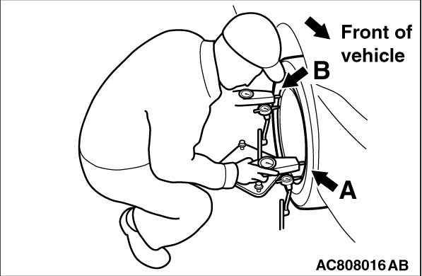 (1) Check that the Mitsubishi genuine wheel with specified size is mounted. Also check that the wheel bearing is not loose. Front Axle.)