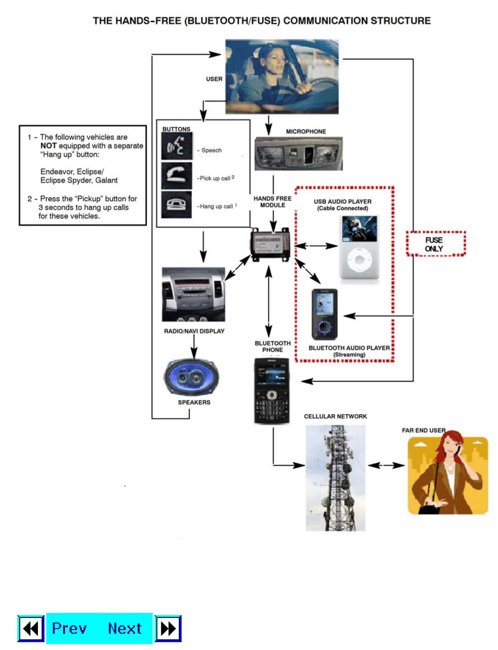 Bluetooth hands-free wireless technology is a global short range communications technology used to connect compatible devices without cables, while maintaining high levels of security. Mitsubishi Motors first offered hands-free connection on the 2007 Outlander and by 2010 it was available throughout the model line. Two different levels of hands-free technology are available on MMNA products:1. Bluetooth Hands-free: Hands-free connection to a compatible mobile phone that allows a user to make and receive calls using simple controls and voice commands.