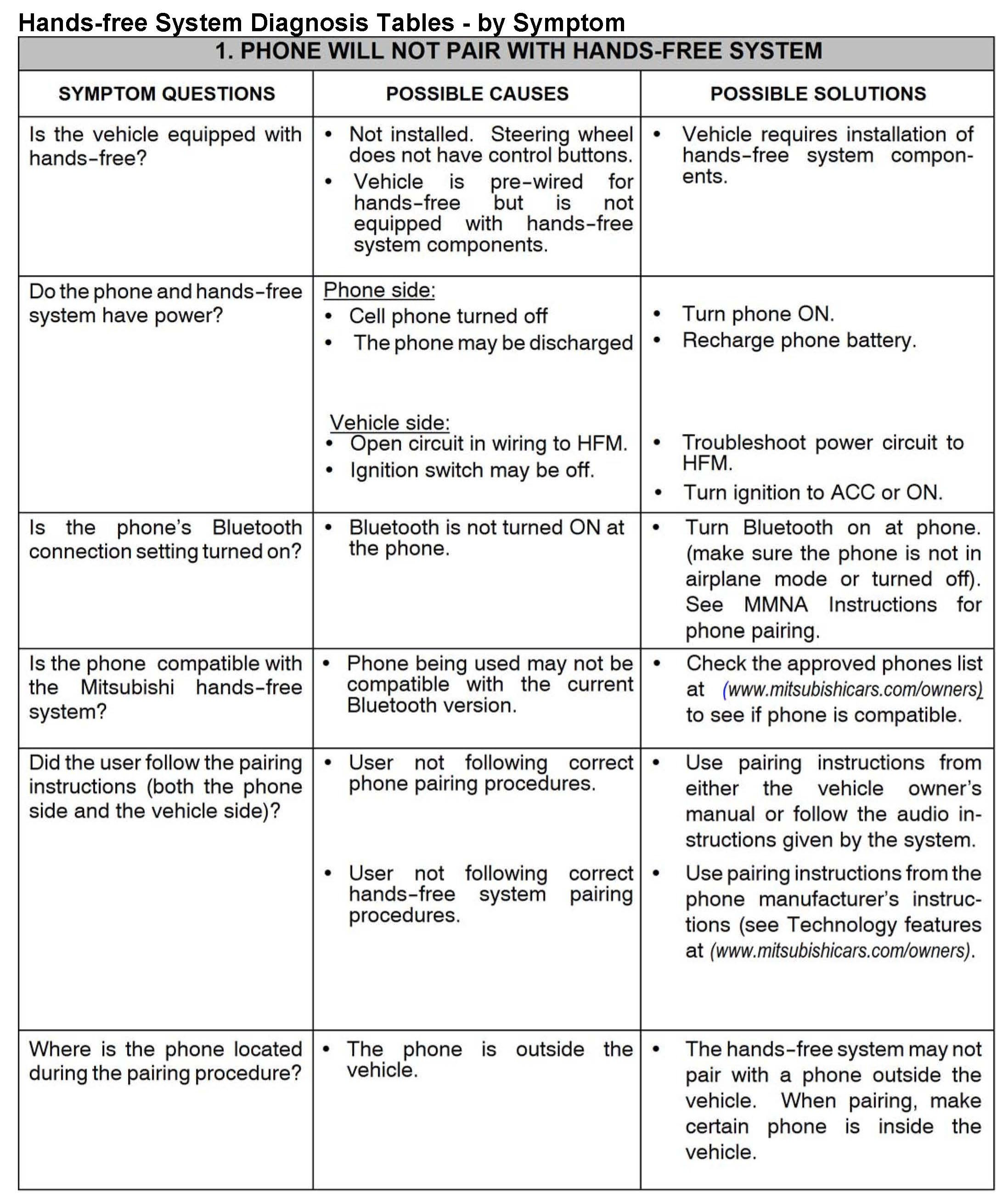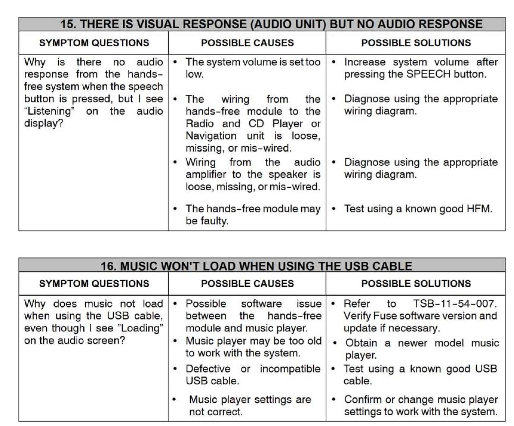 Hands-Free/Fuse Symptoms and Possible Solutions