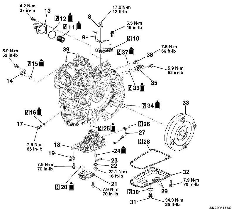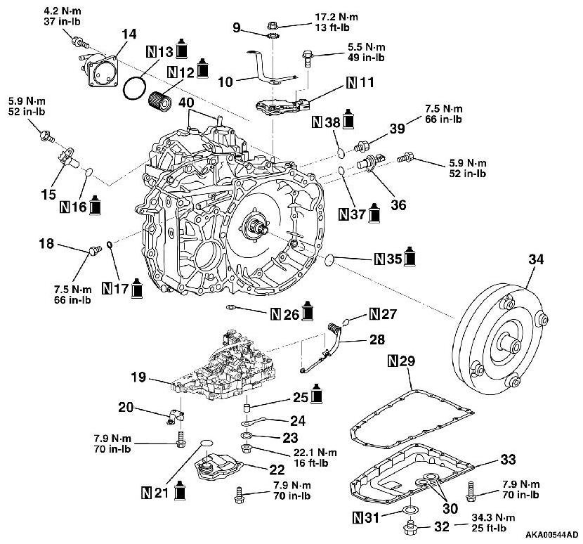 - After cleaning, remove the torque converter, and drain the transmission fluid.