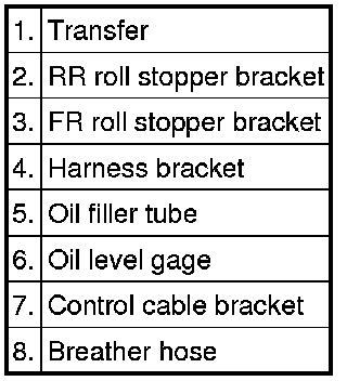 5. Remove the control cable bracket and breather hose from the transaxle.