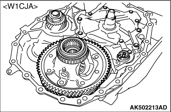 21. Using cylinder gage etc., measure the mounting bore diameter of differential side bearing outer race at the converter housing side; if the standard value is not satisfied, then replace the converter housing.