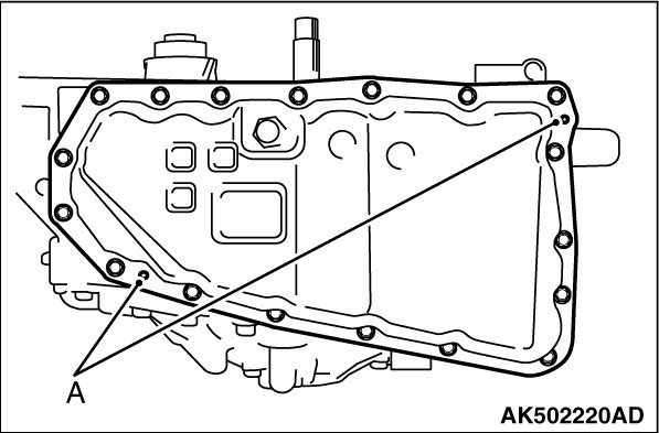 When installing the oil pan, align the dowel pins of transaxle case with dowel pin holes A of the oil pan.