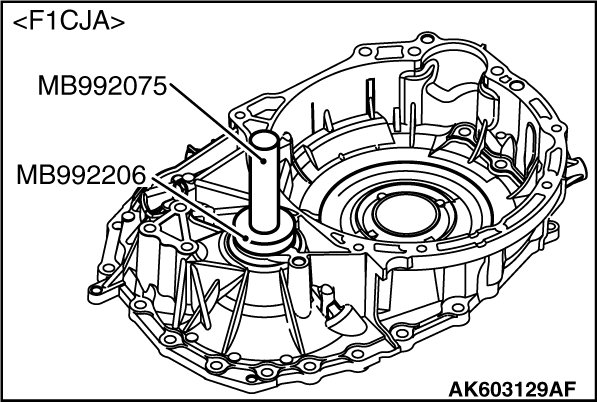 55. Using the special tools MB992141 and MB992075, install the converter housing oil seal on the converter housing.