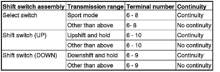 SHIFT SWITCH ASSEMBLY CONTINUITY CHECK