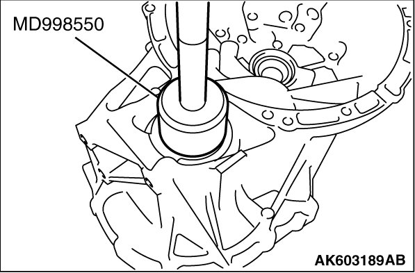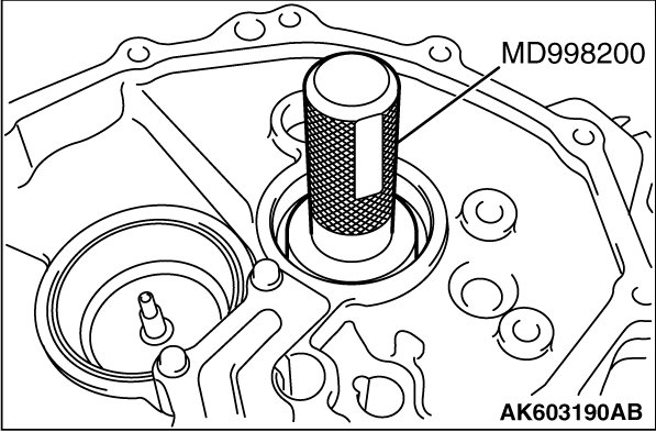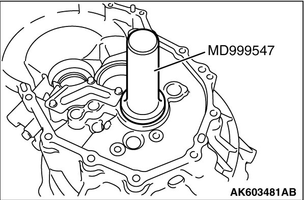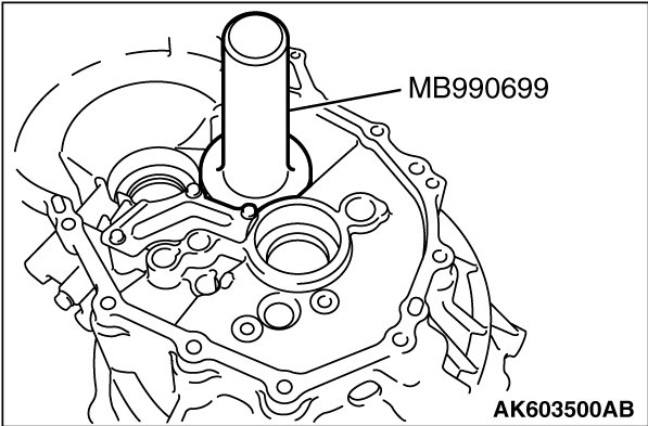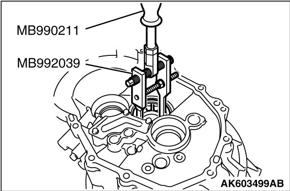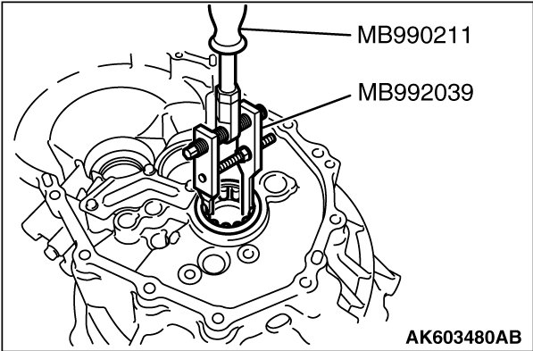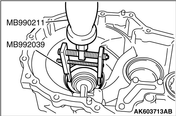1. Using special tools MB990211 and MB992039, remove the cylindrical roller bearing (outer race).