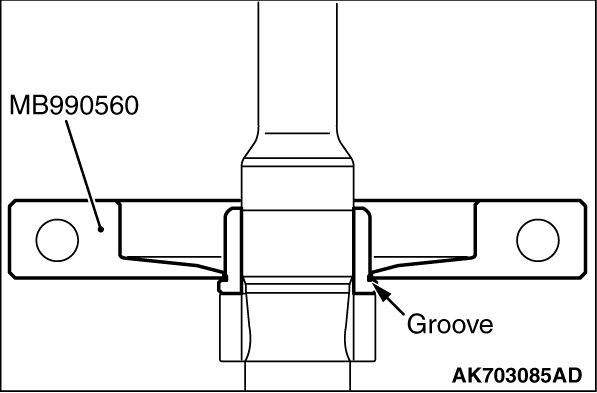 Using special tool MB990560, support the cylindrical roller bearing and remove the cylindrical roller bearing.