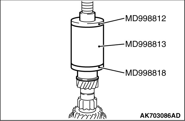 2. Using special tools MD998812, MD998813 and MD998818, install the cylindrical roller bearing.