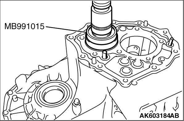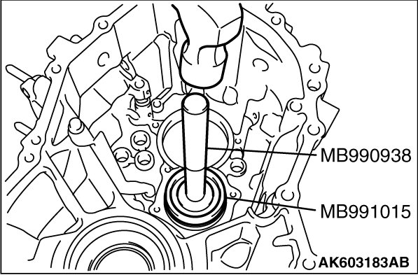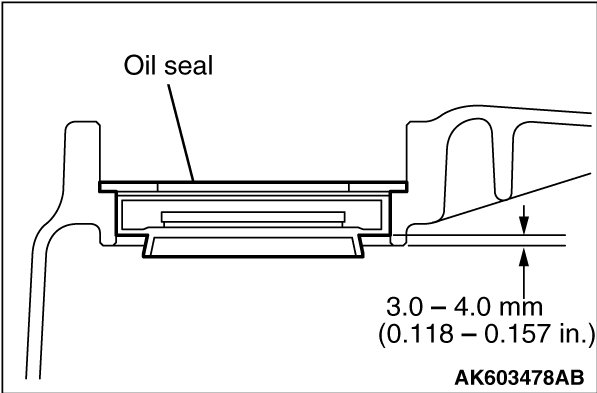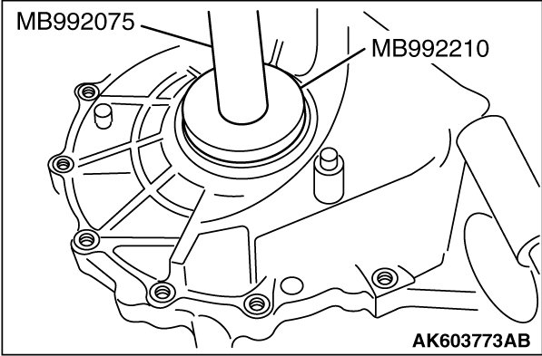 1. Using special tools MB992210 and MB992075, press-fit the oil seal until the difference in height between the transaxle case and oil seal is obtained as shown.