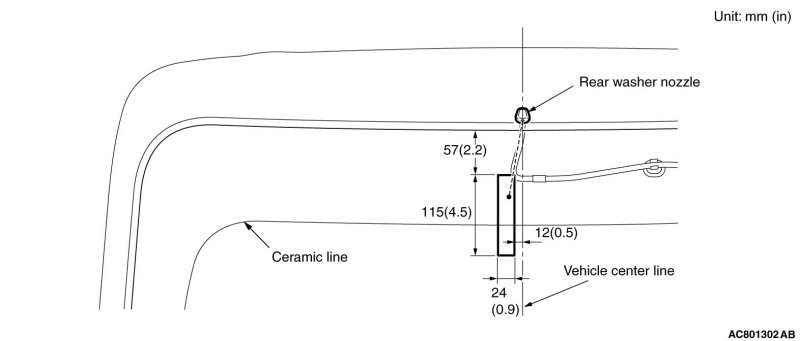 1. Use special tool Adjustment tool, washer nozzle (MB992326) to adjust the splashing points of the nozzle.