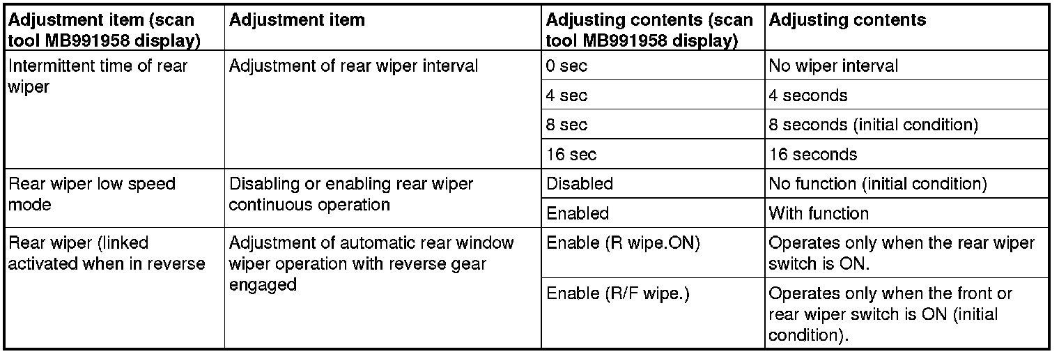 By operating the ETACS system or MMCS of scan tool MB991958, the following functions can be programmed. The programmed information is held even when the battery is disconnected.
