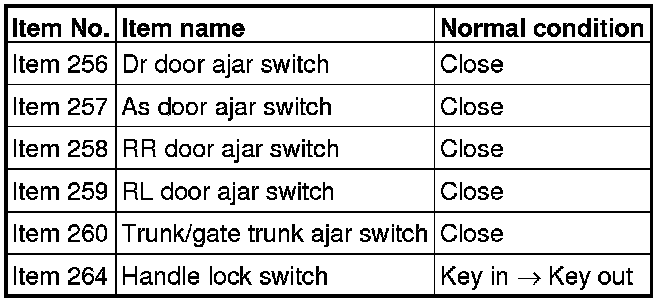 NO [Normal condition is not displayed for item No. 260 (LANCER SPORTBACK).] : Inspection Procedure 9.