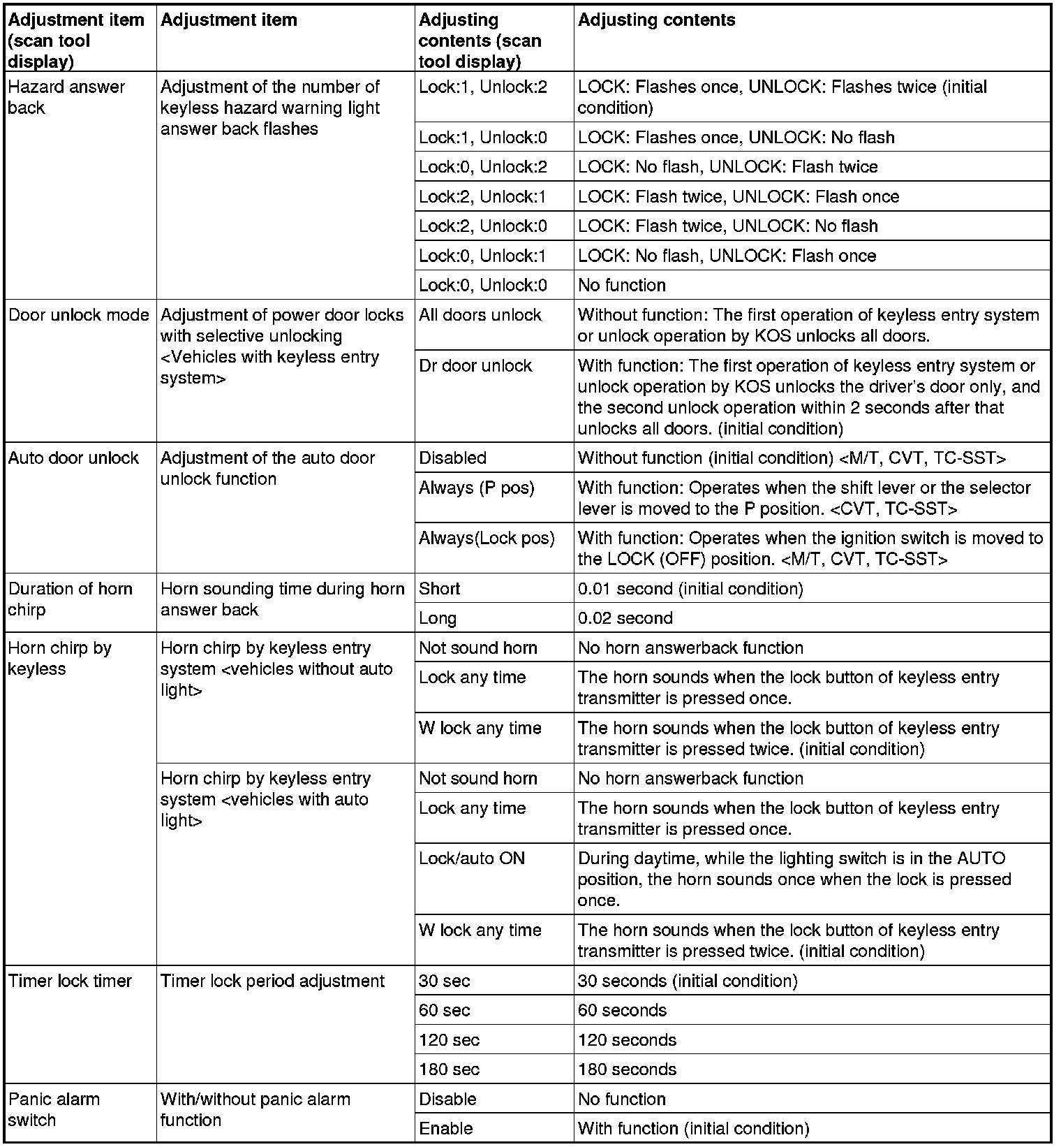 By operating the ETACS system or MMCS of scan tool MB991958, the following functions can be programmed. The programmed information is held even when the battery is disconnected.