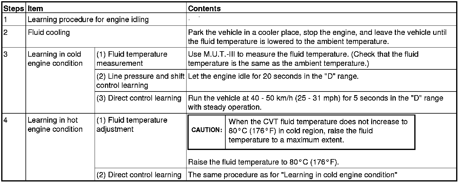 After initialization, the TCM does not have any learned value. This may degrade the shifting operation quality. The learning procedure is described below.