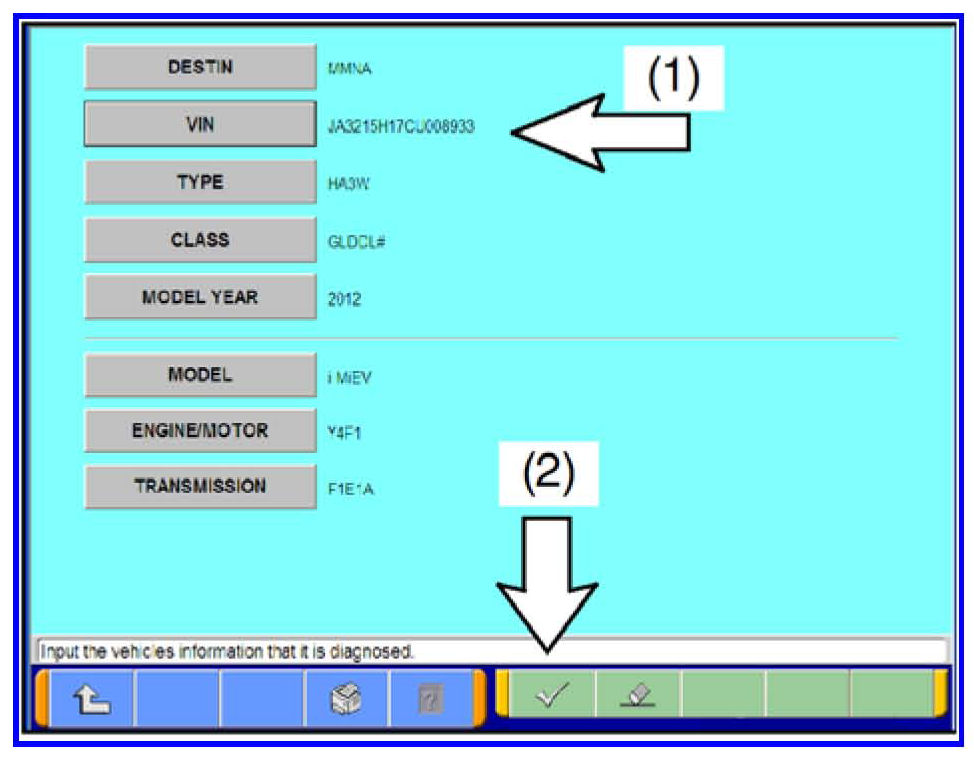 ^ Connect the MUT-III main harness with the blue DLC connection to the VCI.