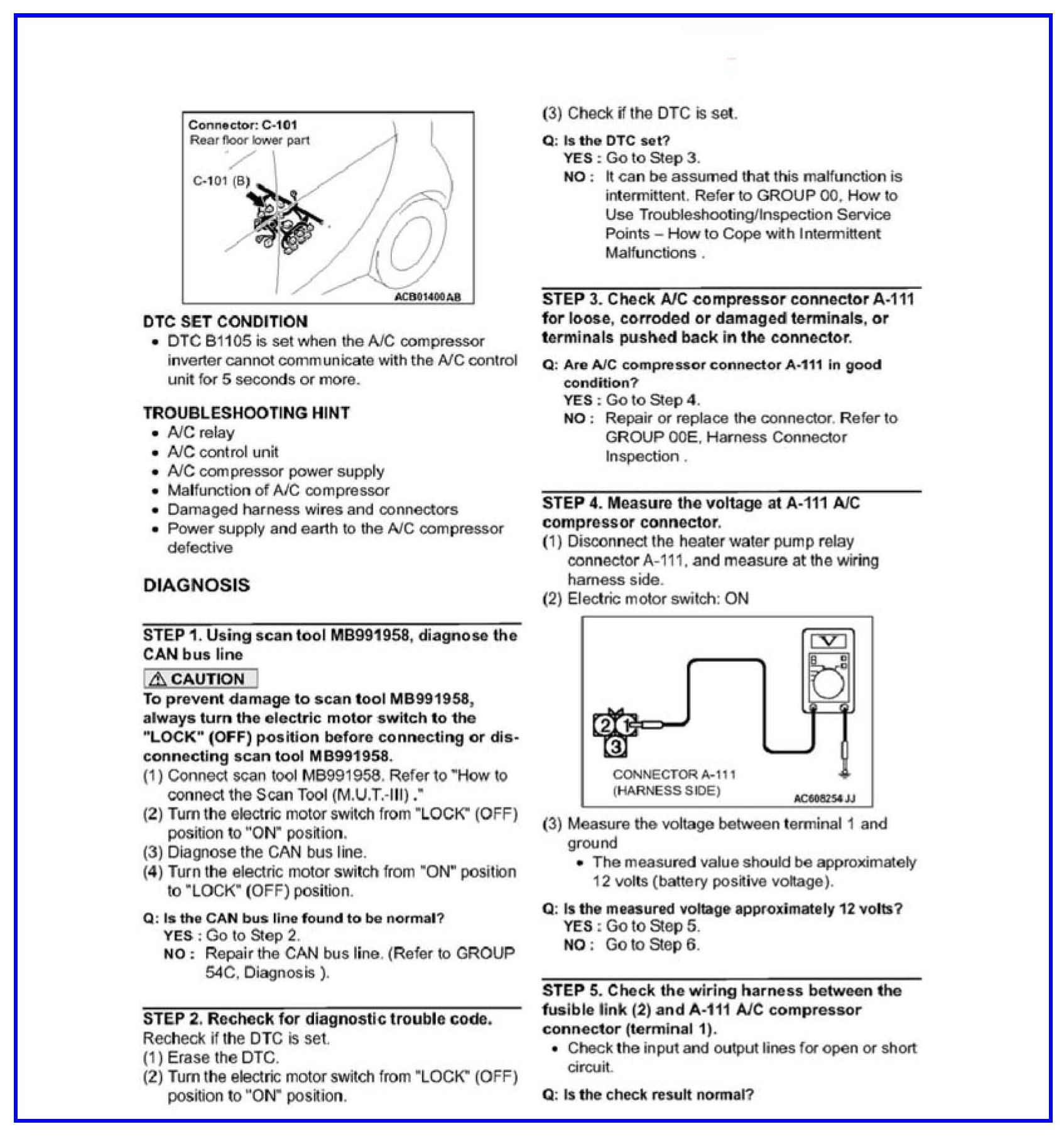 This TSB provides revised troubleshooting procedures for A/C diagnosis codes B1105, B1108, B1109, B1110.