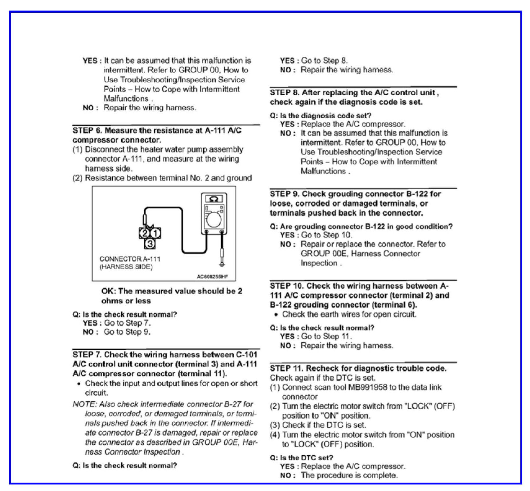 2012 i-MiEV Service Manual Group 55 - Heater, Air Conditioning and Ventilation >> A/C Diagnosis >> Diagnostic Trouble Code Procedures < A/C Control Assembly>
