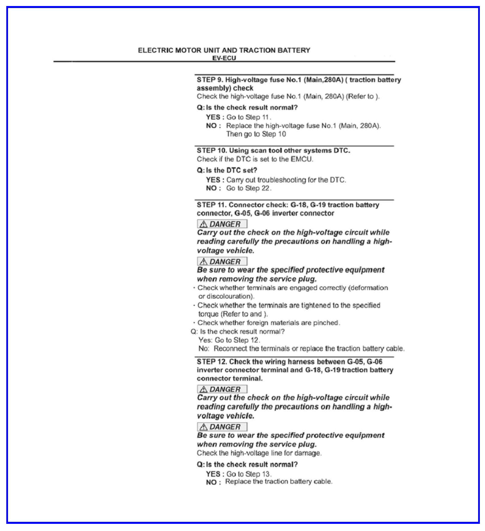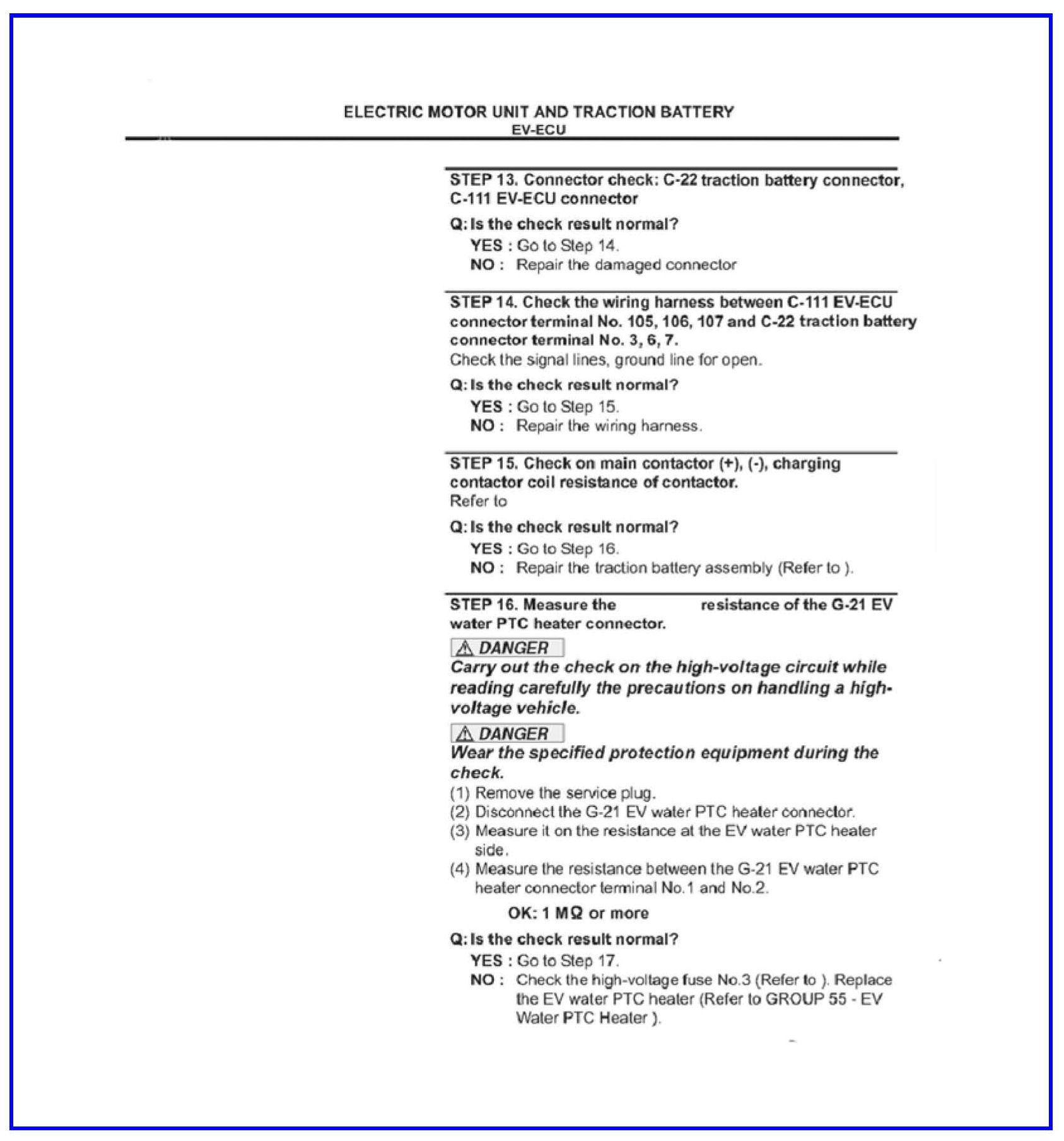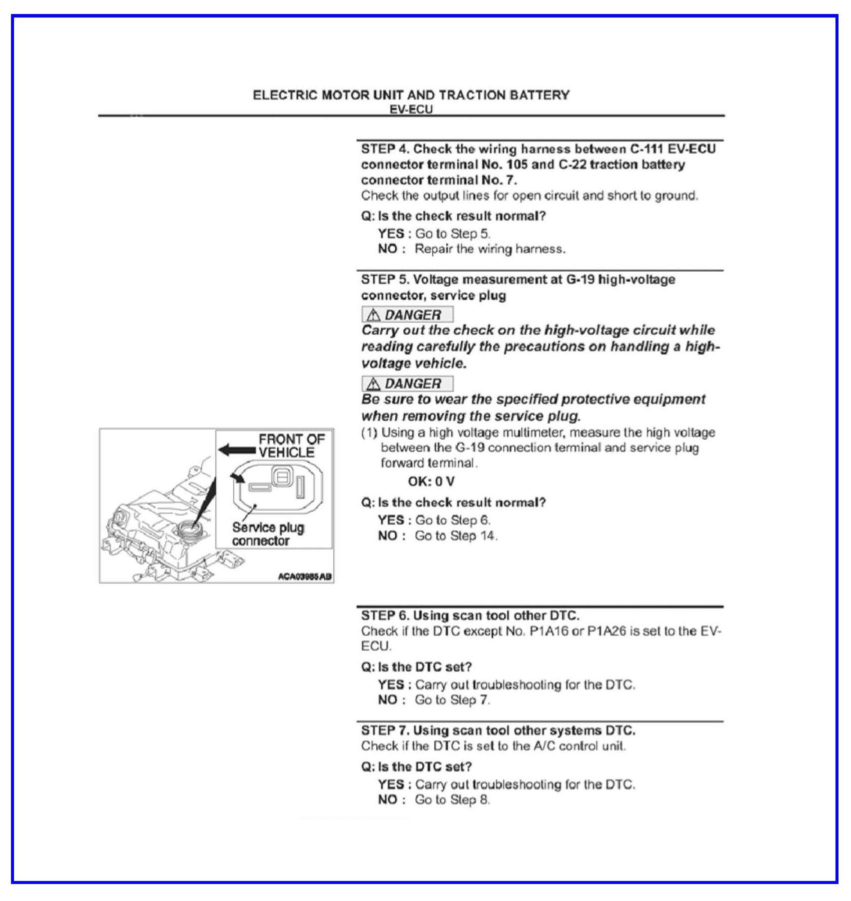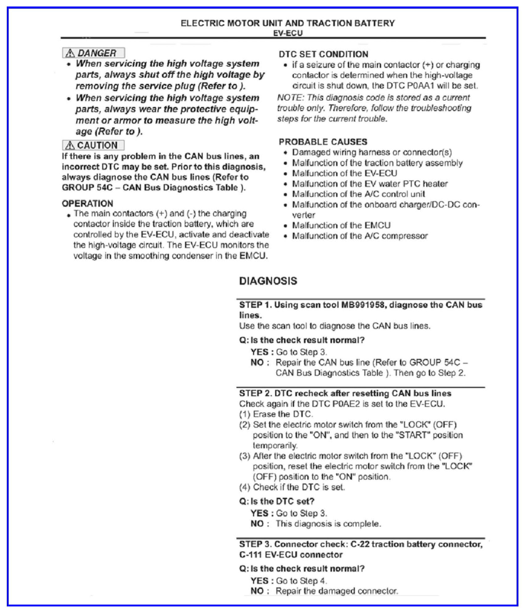 This TSB provides revised trouble shooting procedures for EV-ECU diagnostic codes P0AA1, P0AA4, P0AE2, P1A15, P1A16, P1A17, P1A26, and P1AF2.
