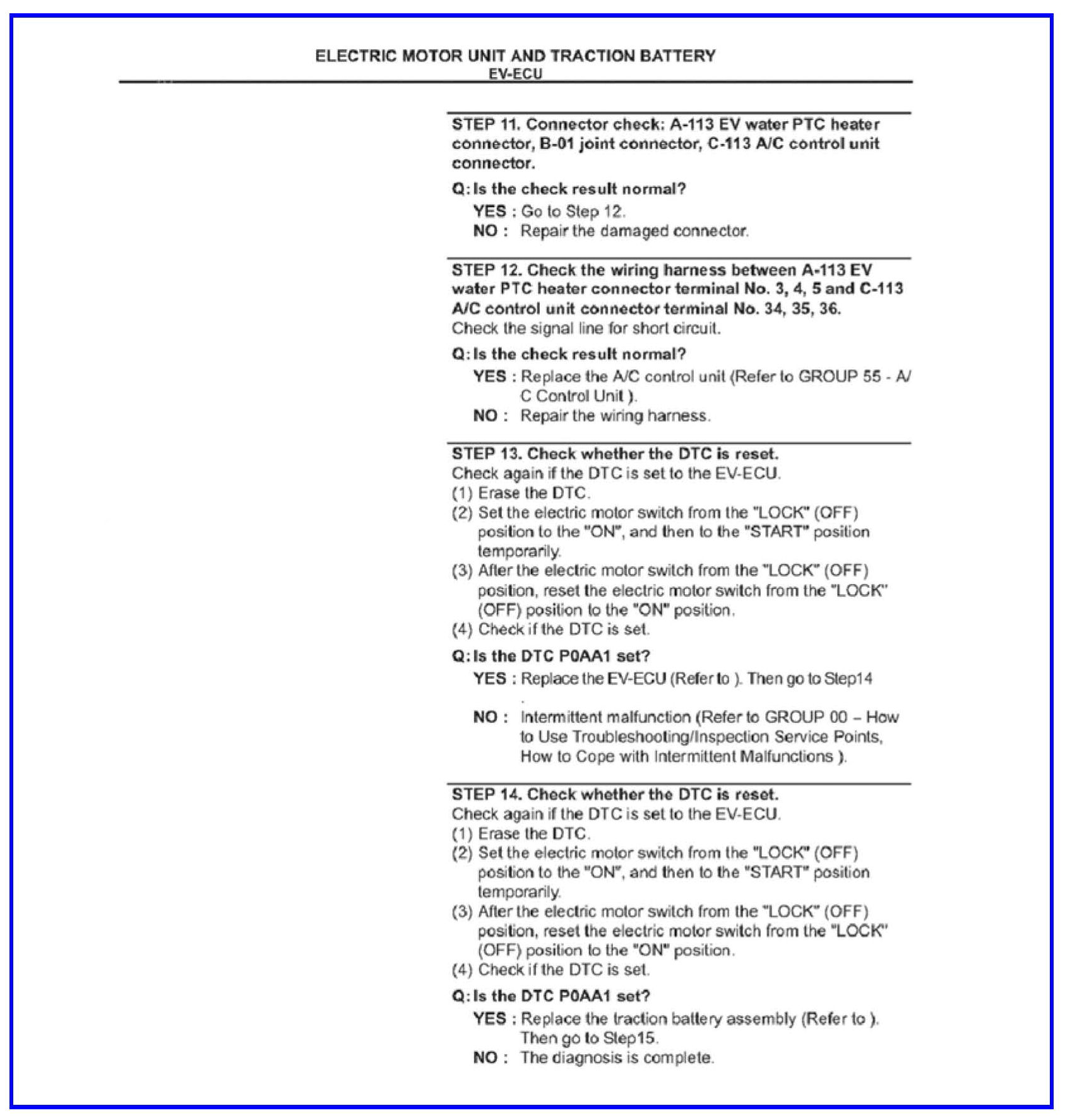 Please replace the troubleshooting procedures for DTC P0AA1 with the following pages: