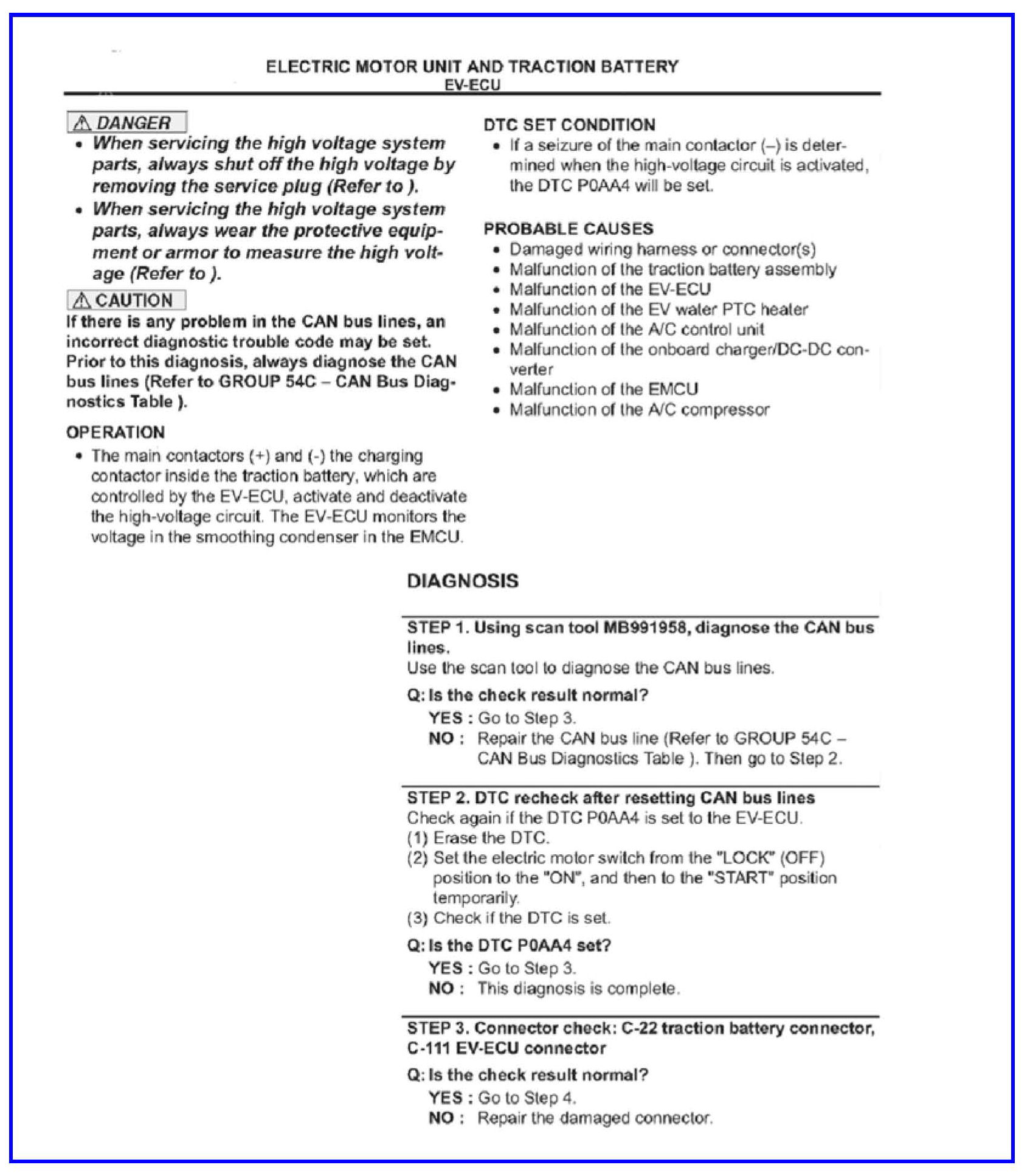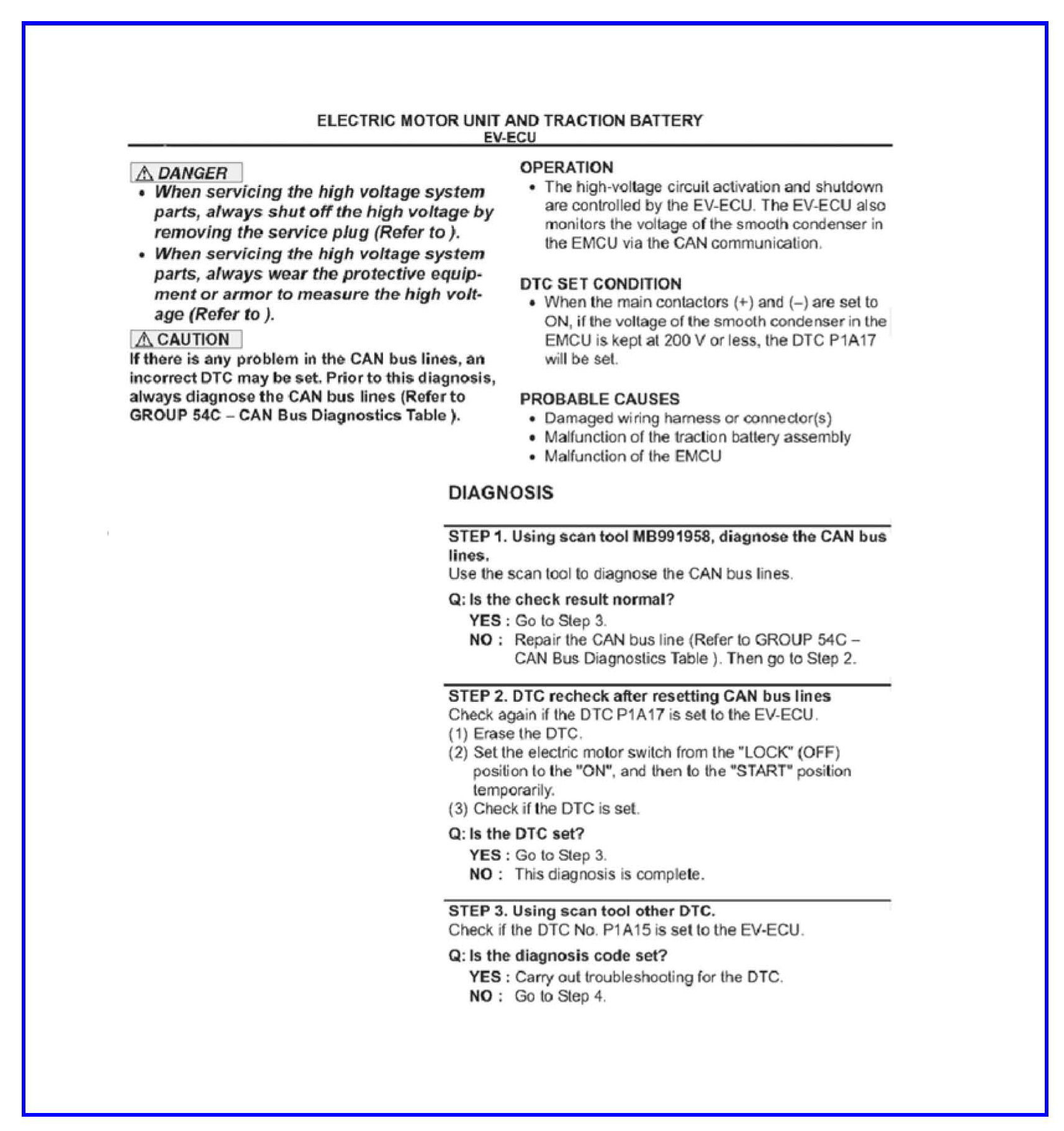 2012 i-MiEV Service Manual Group 54D: Electric Motor Unit and Traction Battery - EV-ECU - Diagnostic Trouble Control Procedures