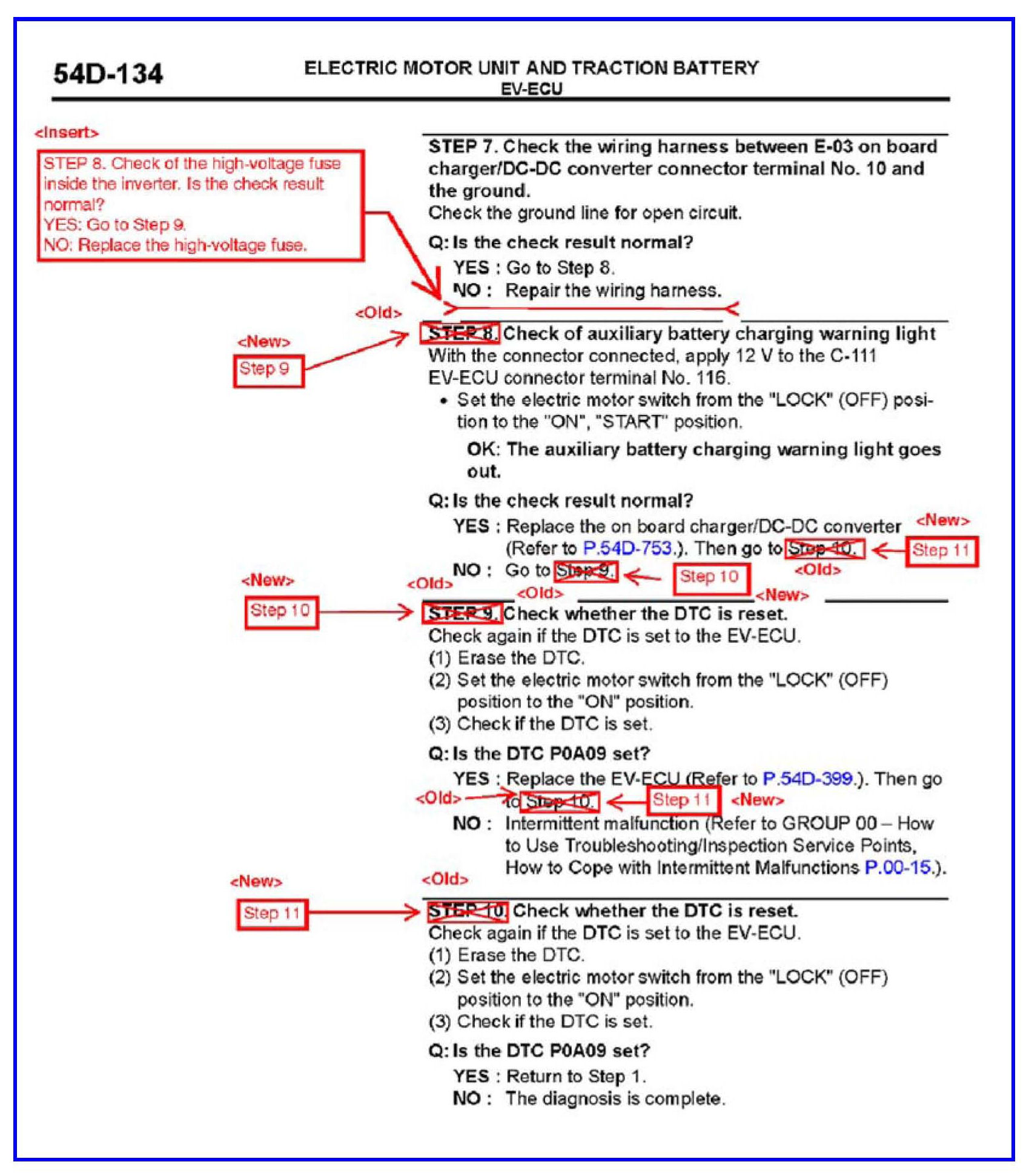 Make the following changes to Group 54D << EV-ECU >> Diagnostic Troubleshooting Procedures� DTC P0A09 - Auxiliary Battery Charging Control Circuit