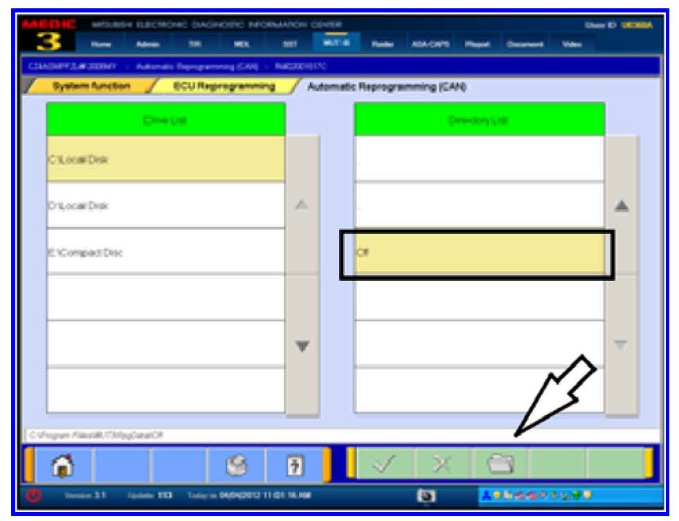 11. Select MUT3 and click the file Folder icon at the bottom of the screen.